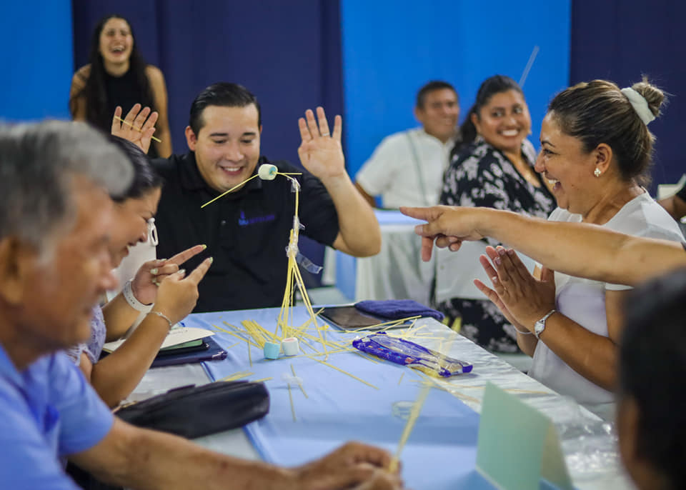 During the team-building time, participants enjoyed working together on an interesting challenge: building a tower using only three materials (spaghetti sticks, marshmallows, and tape). This exercise was not only fun but also fostered cooperation and teamwork.